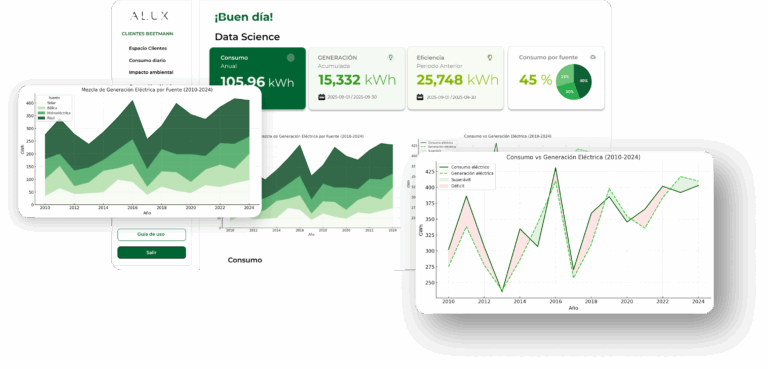 consumo y generación mediante visualizaciones y modelos que apoyan la eficiencia energética y la toma de decisiones estratégicas.